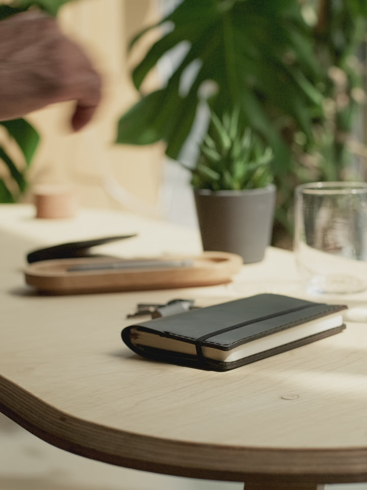 Extremely high quality A6 Refillable Notebook cut from full-grain Tuscan leather, hand-stitched in London. Perfectly sized for book pocket of the FRAHM x Wingback Harrington Workshop Jacket.