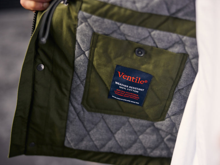 Instead, we've lined the Ventile with soft brushed herringbone cotton cashmere, for warmth, comfort, breathability and temperature control.
